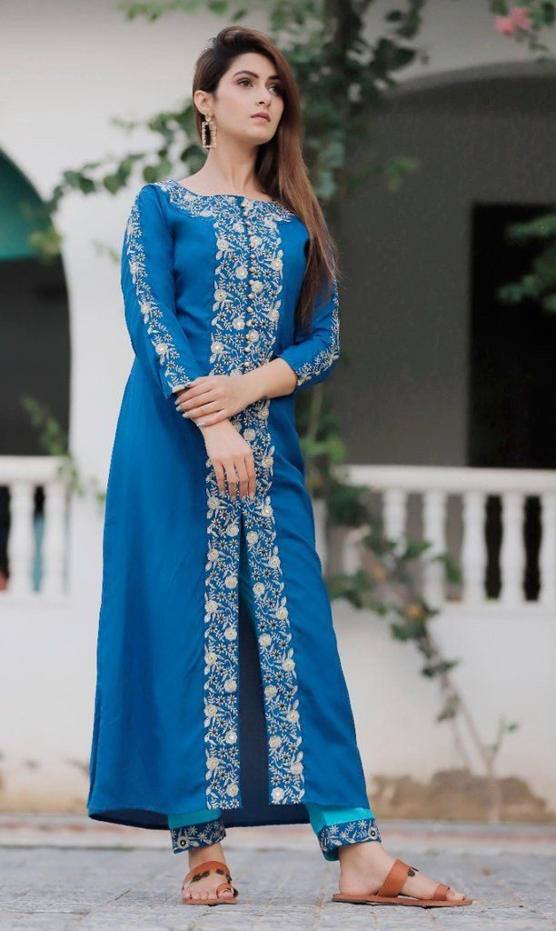 This style adds a completely different look to your regular kurti. The front slit or cut is on the front side, center or front slit A-line. They can be paired with leggings, jeans, palazzo or dhoti style pants. Minimum accessories and simple footwear can ablaze your style parameter.